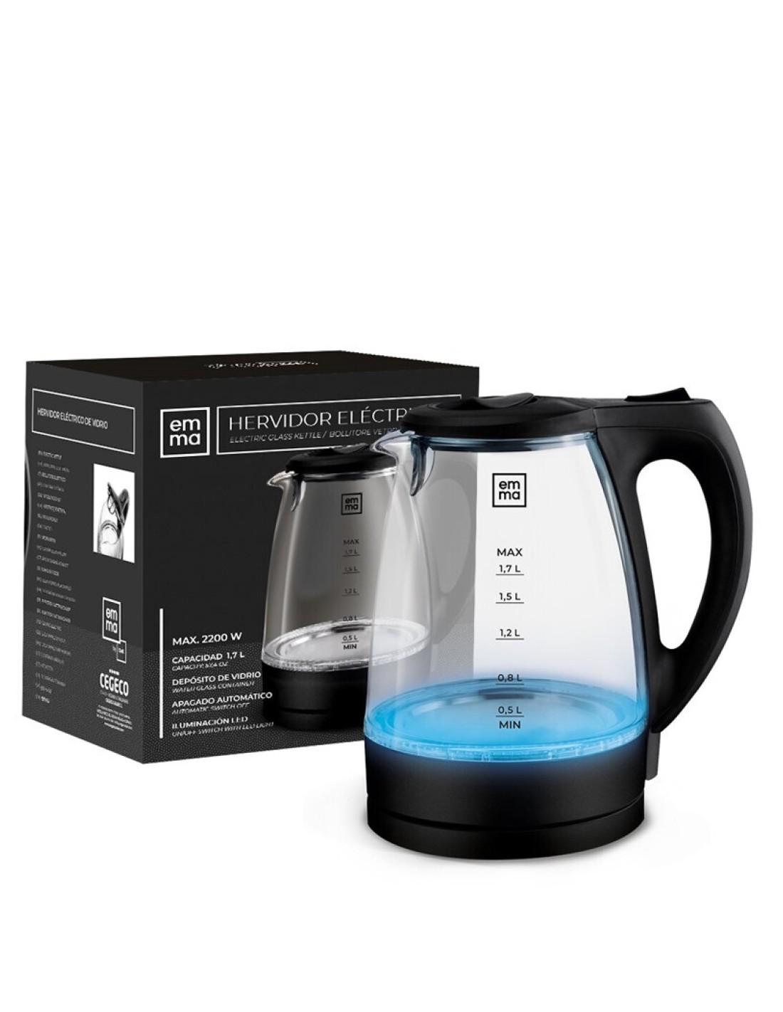 Emma Bollitore Vetro Elettrico 2200W 1,7