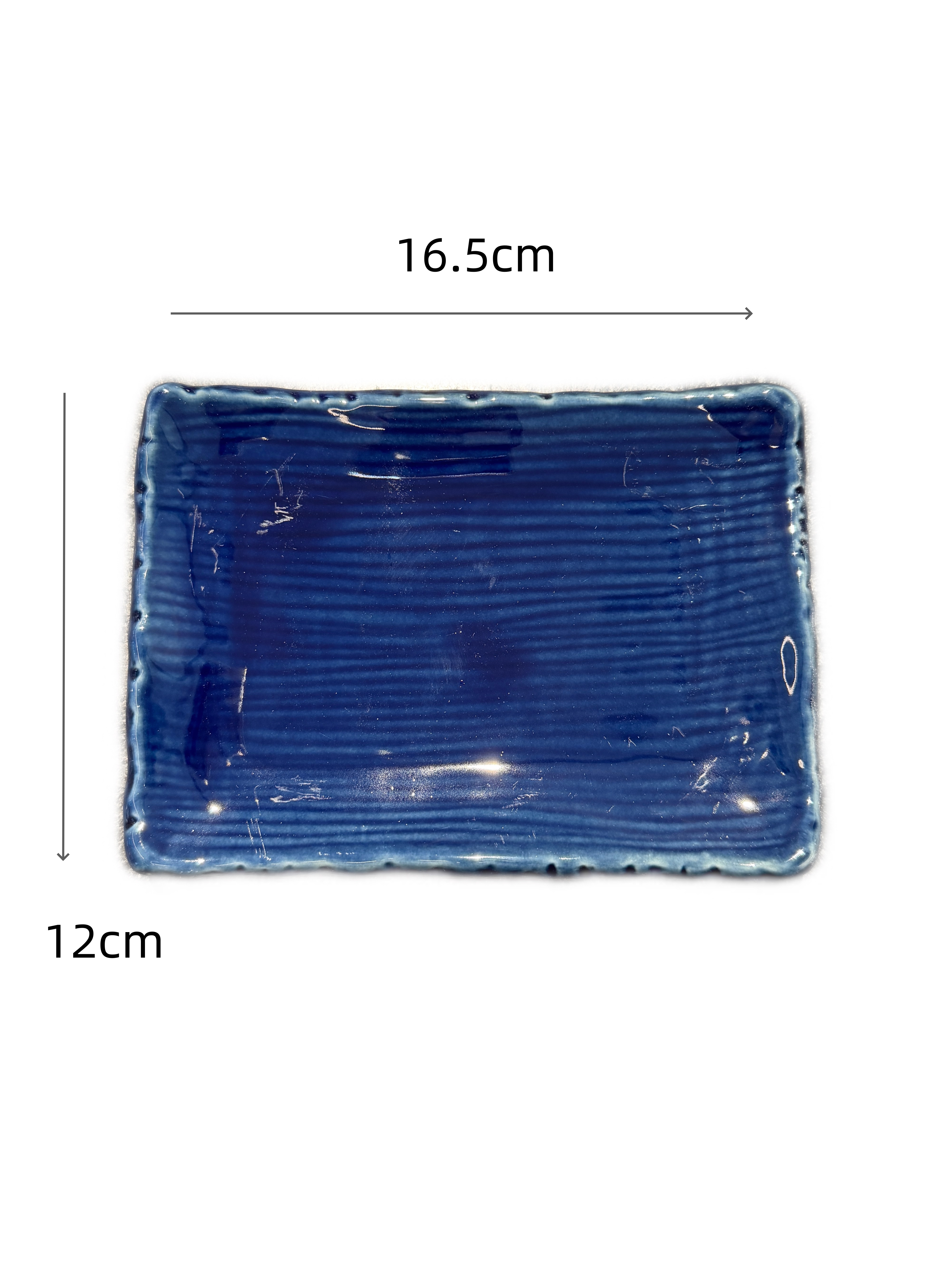 JS Piatto rettangolare blu righe orizzontali in ceramica 16,5×12×2 cm