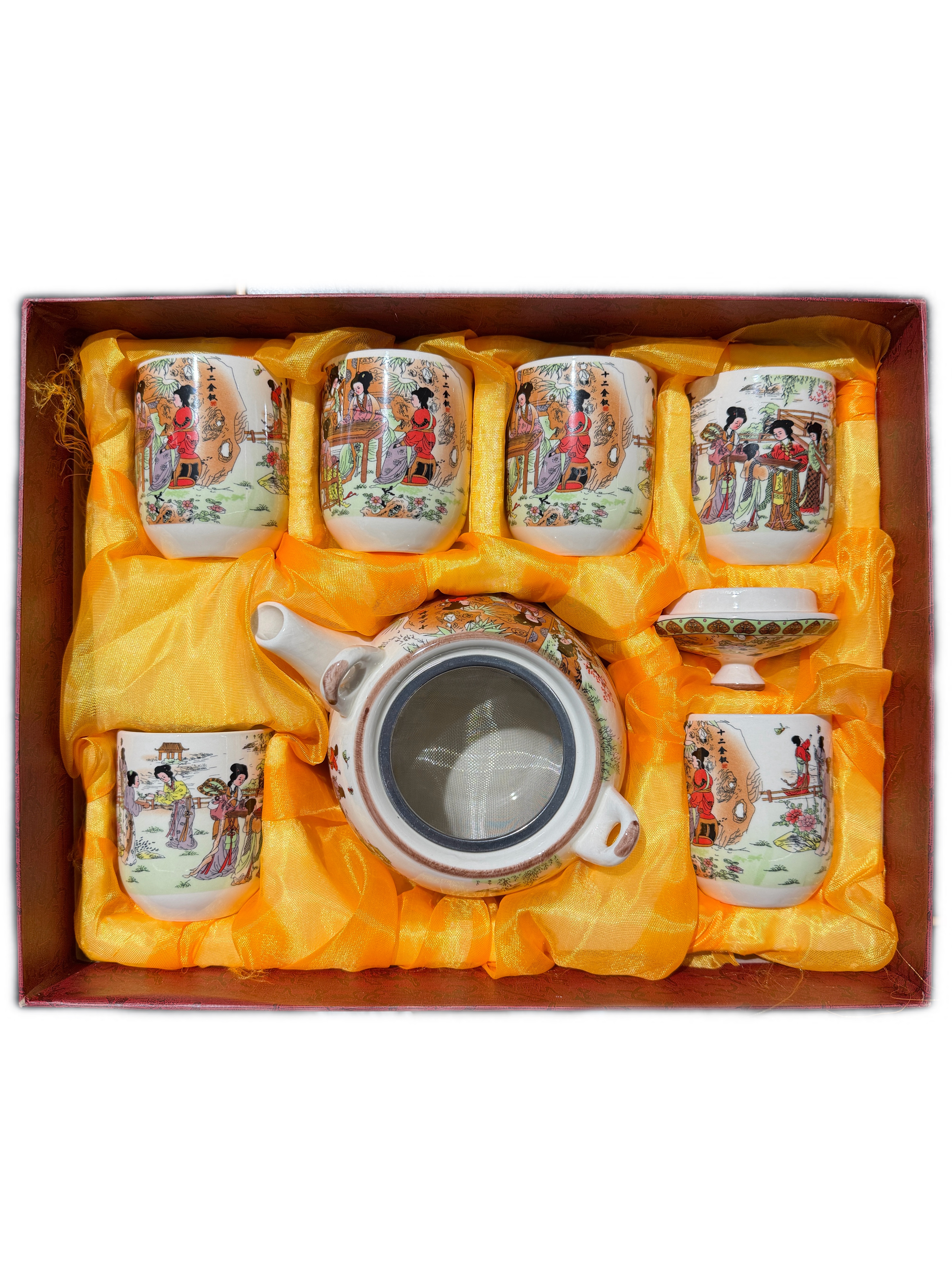 Set 7 pz teiera con manico in ceramica 12 fanciulle d’oro