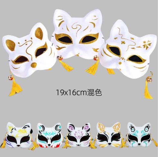 Maschere metà volto Kitsune giapponesi in plastica 19x16cm