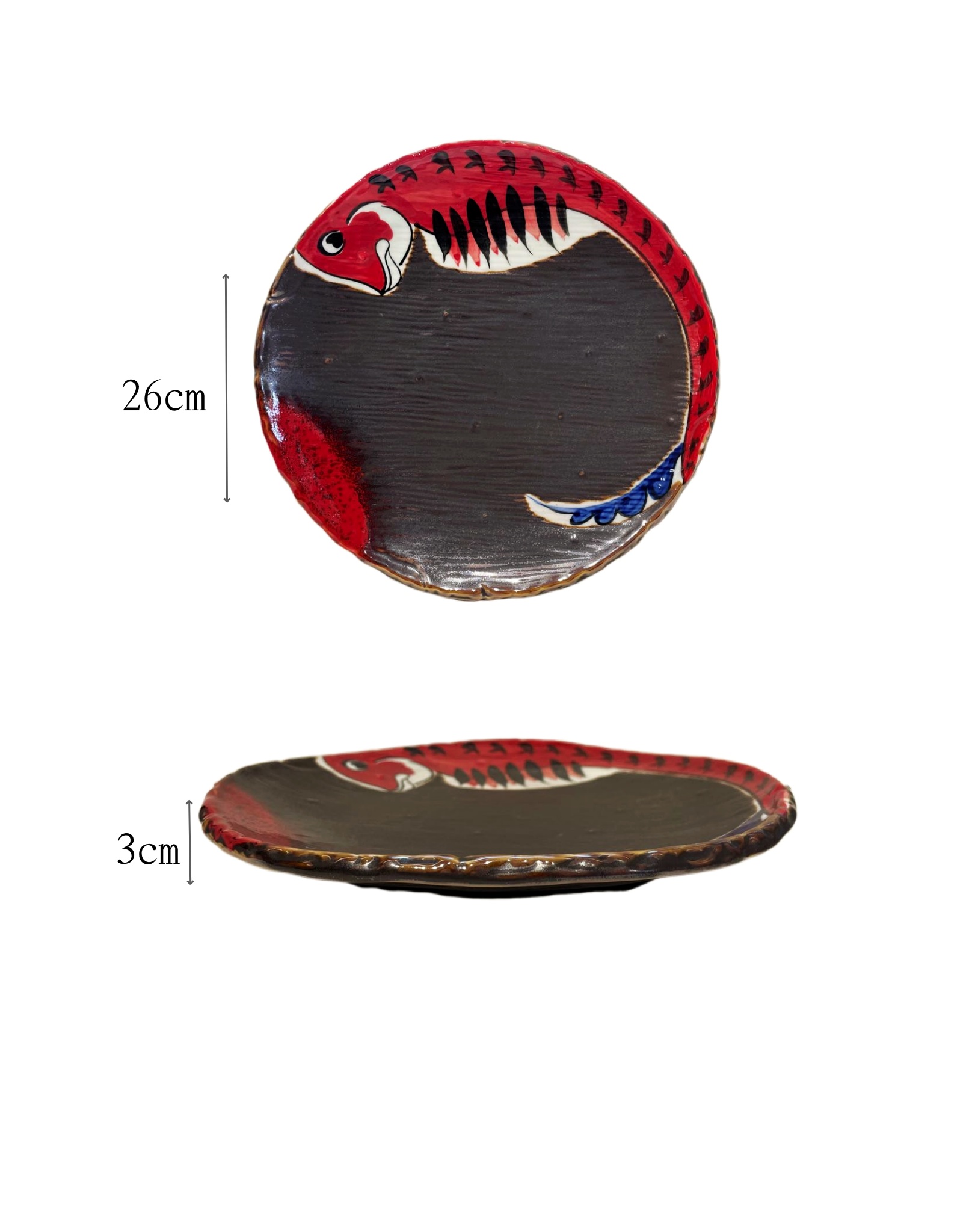 LC piatto rotondo corona con motivo Big Fish & Begonia rosso in ceramica 26*26*3