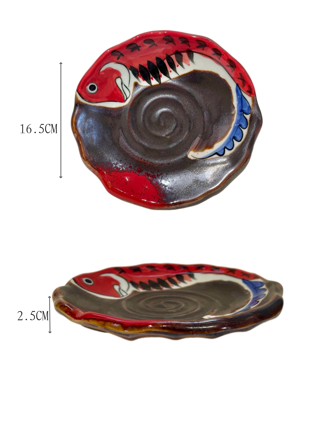 LC piatto con motivo Big Fish & Begonia rosso in ceramica 16.5*16.5*2.5