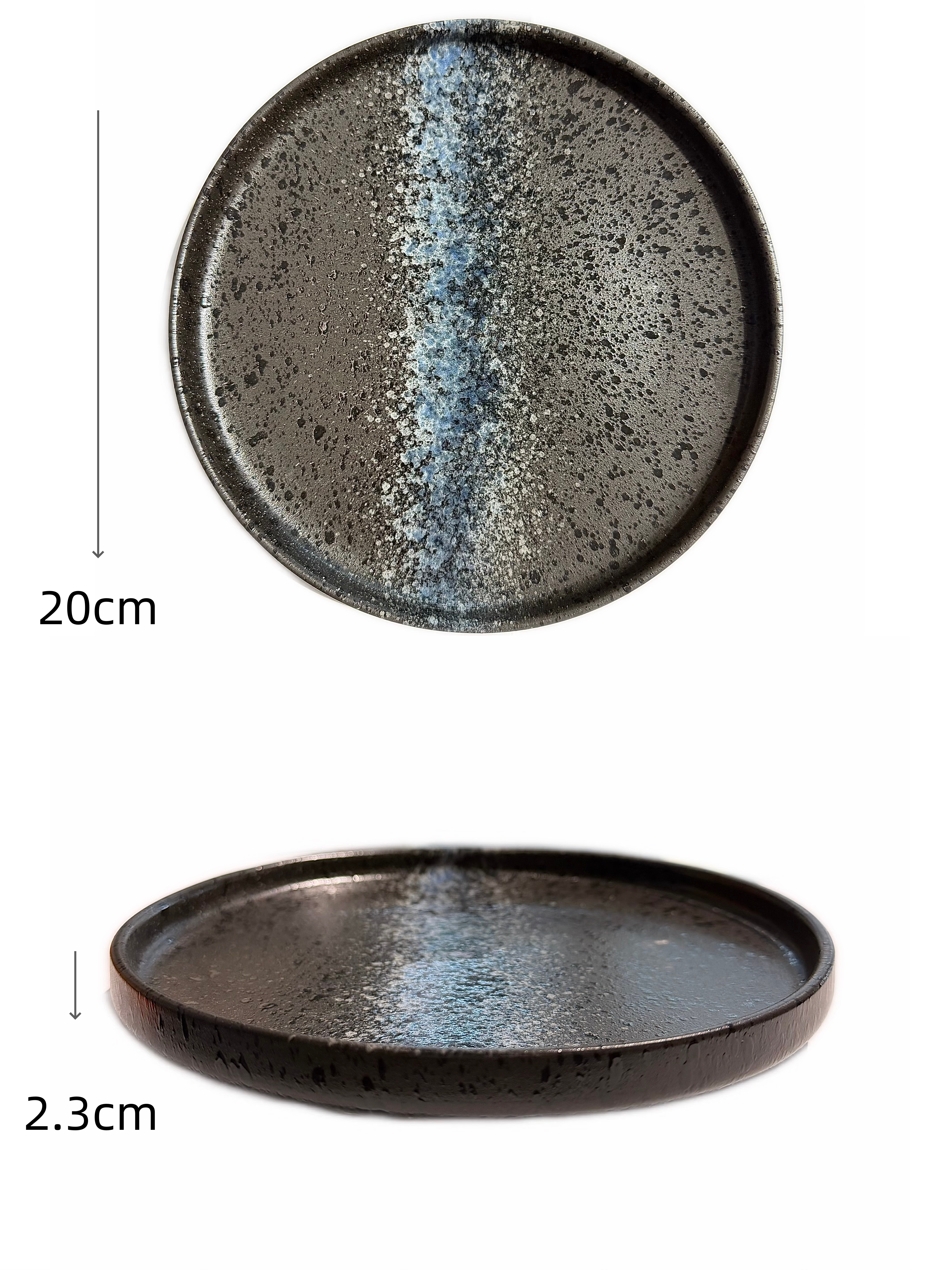 TJ-LD Piatto piano nero/blu in ceramica D.20xH2.3cm