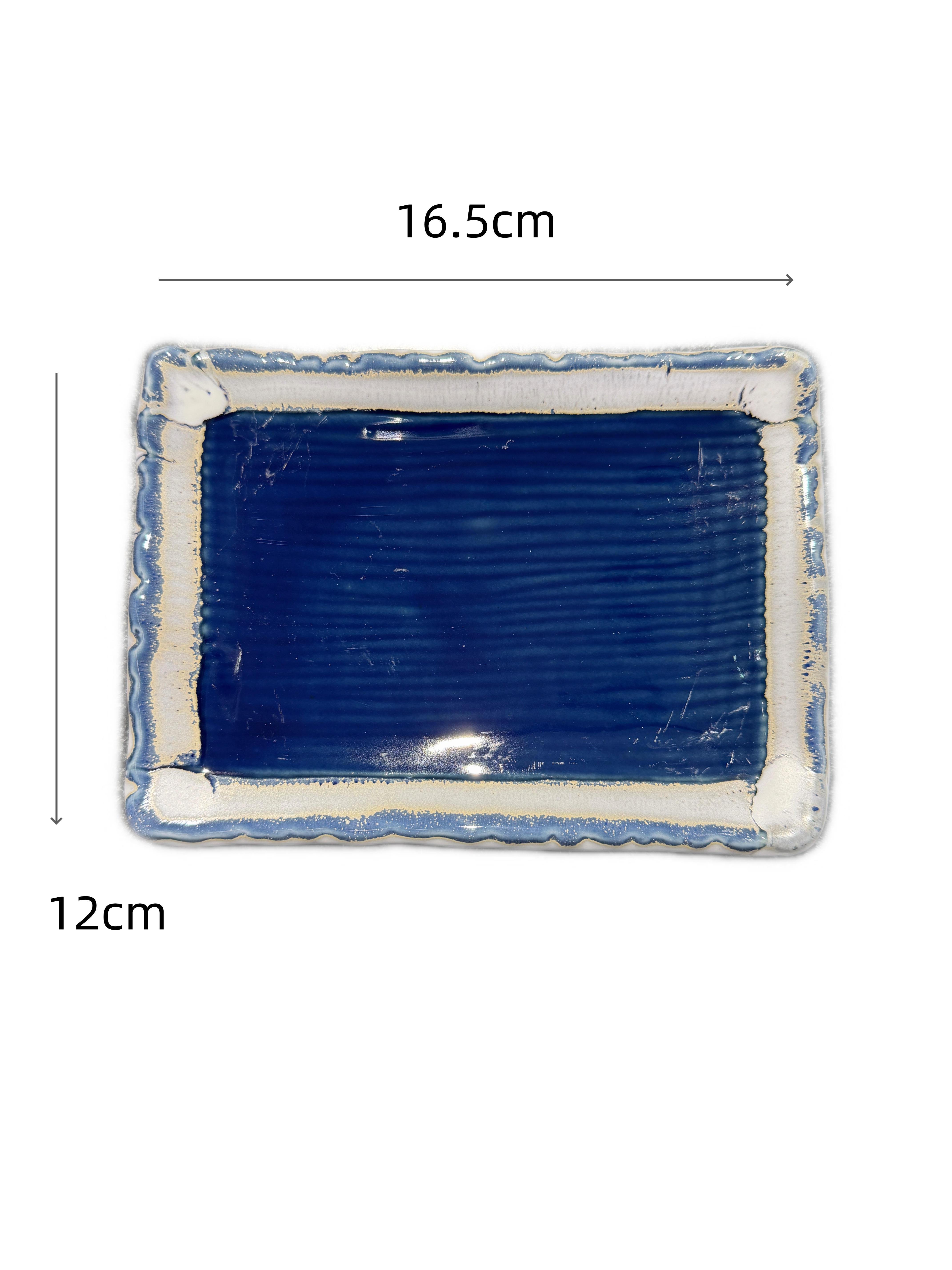 JS Piatto rettangolare righe orizzontali blu in ceramica 16,5×12×2 cm