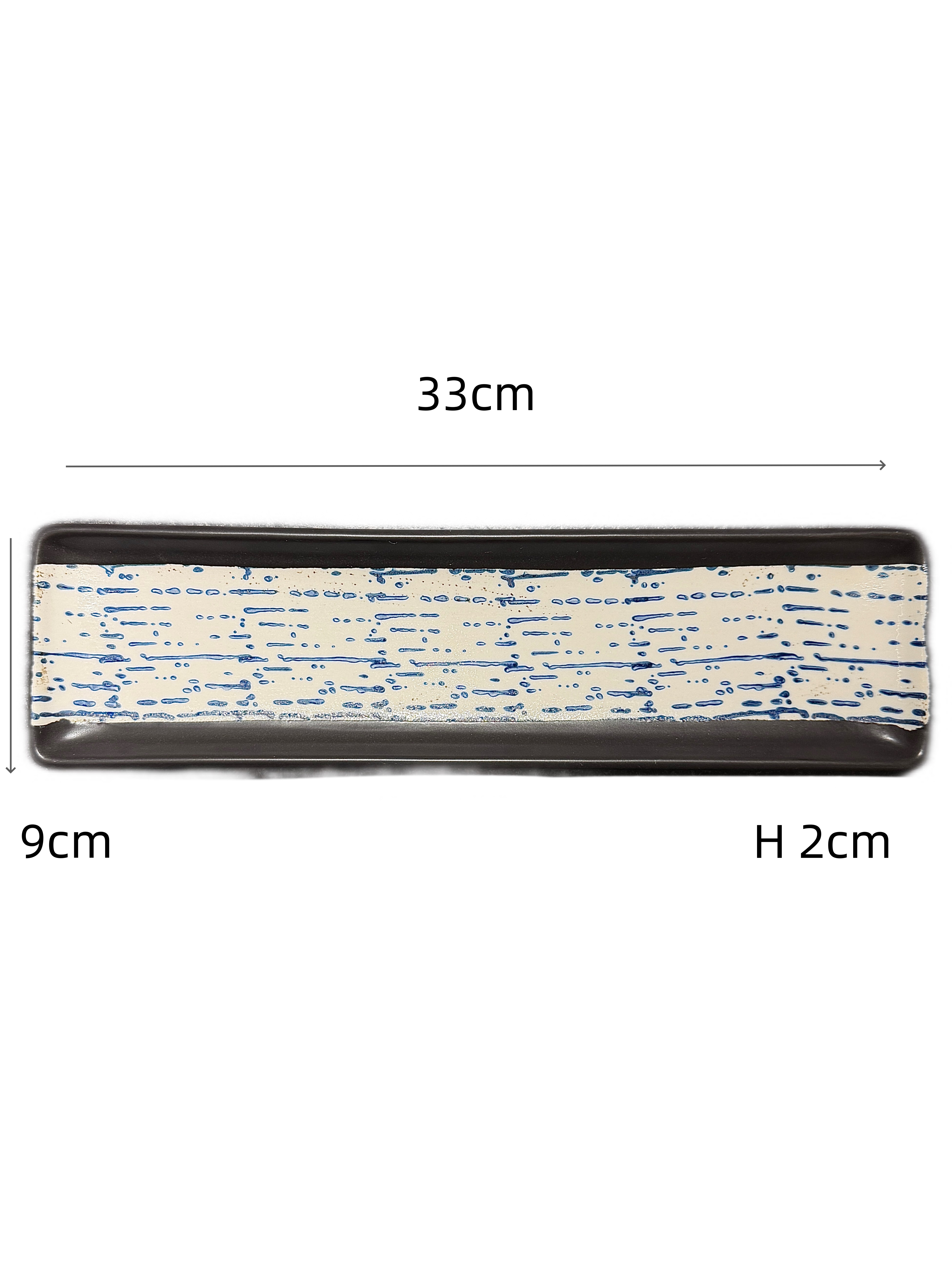 手彩12"石纹边条形盘