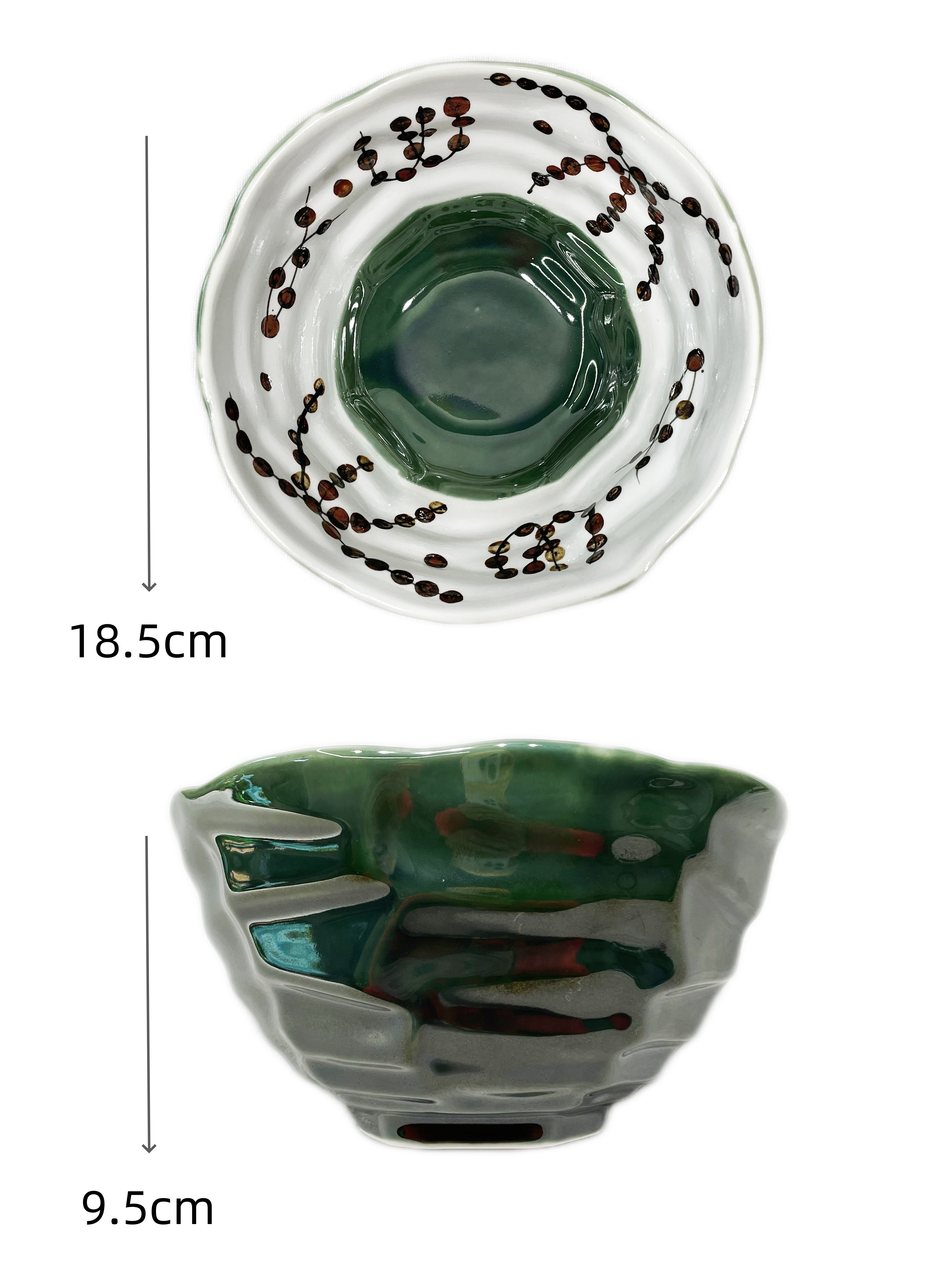 LC ciotola ondulata con fondo verde e fiori bianchi in ceramica 18.5*18.5*9.5