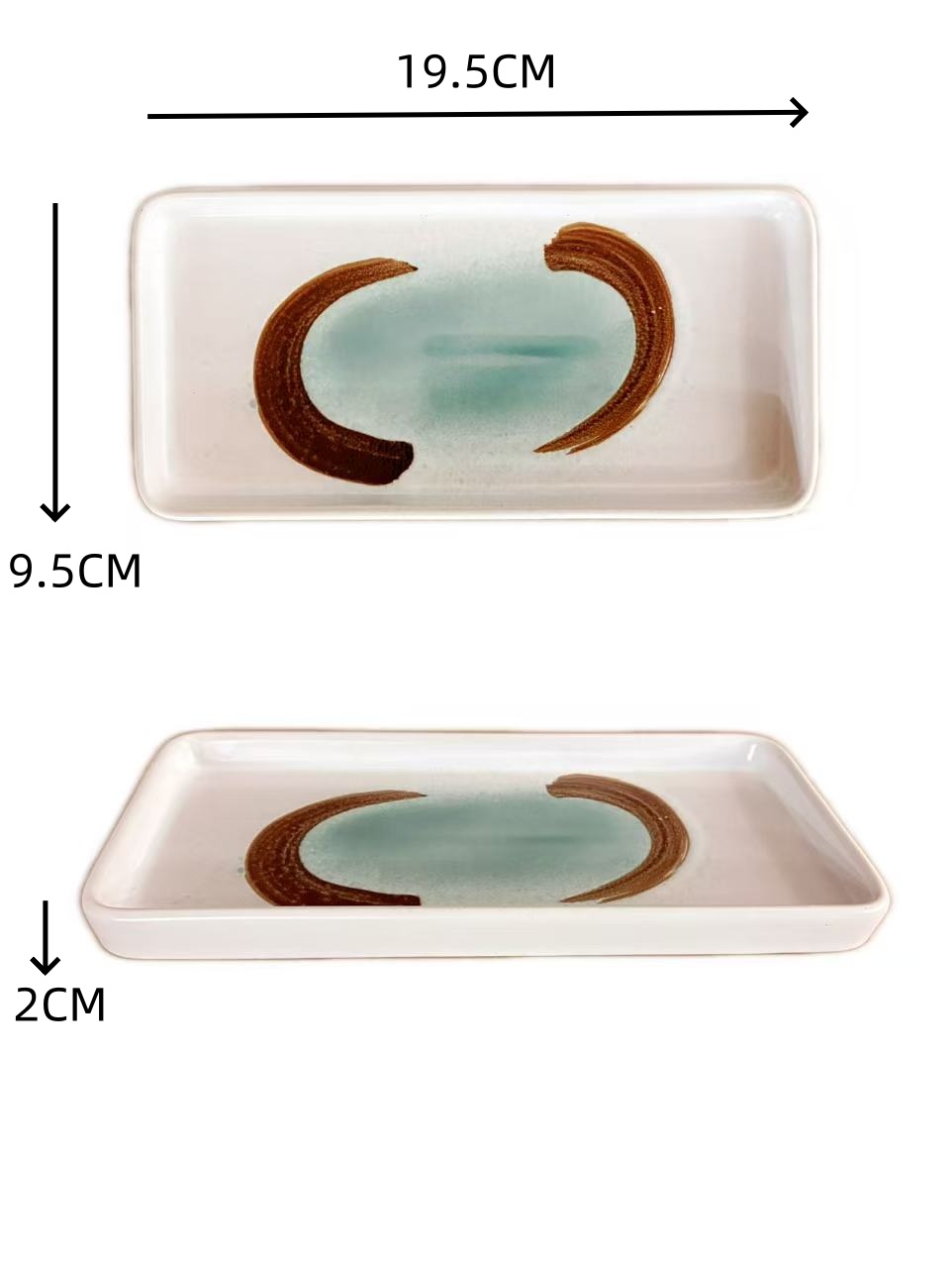 TJ-LM Piatto rettangolare bianco/verde in ceramica 19.5x9.5xH.2cm