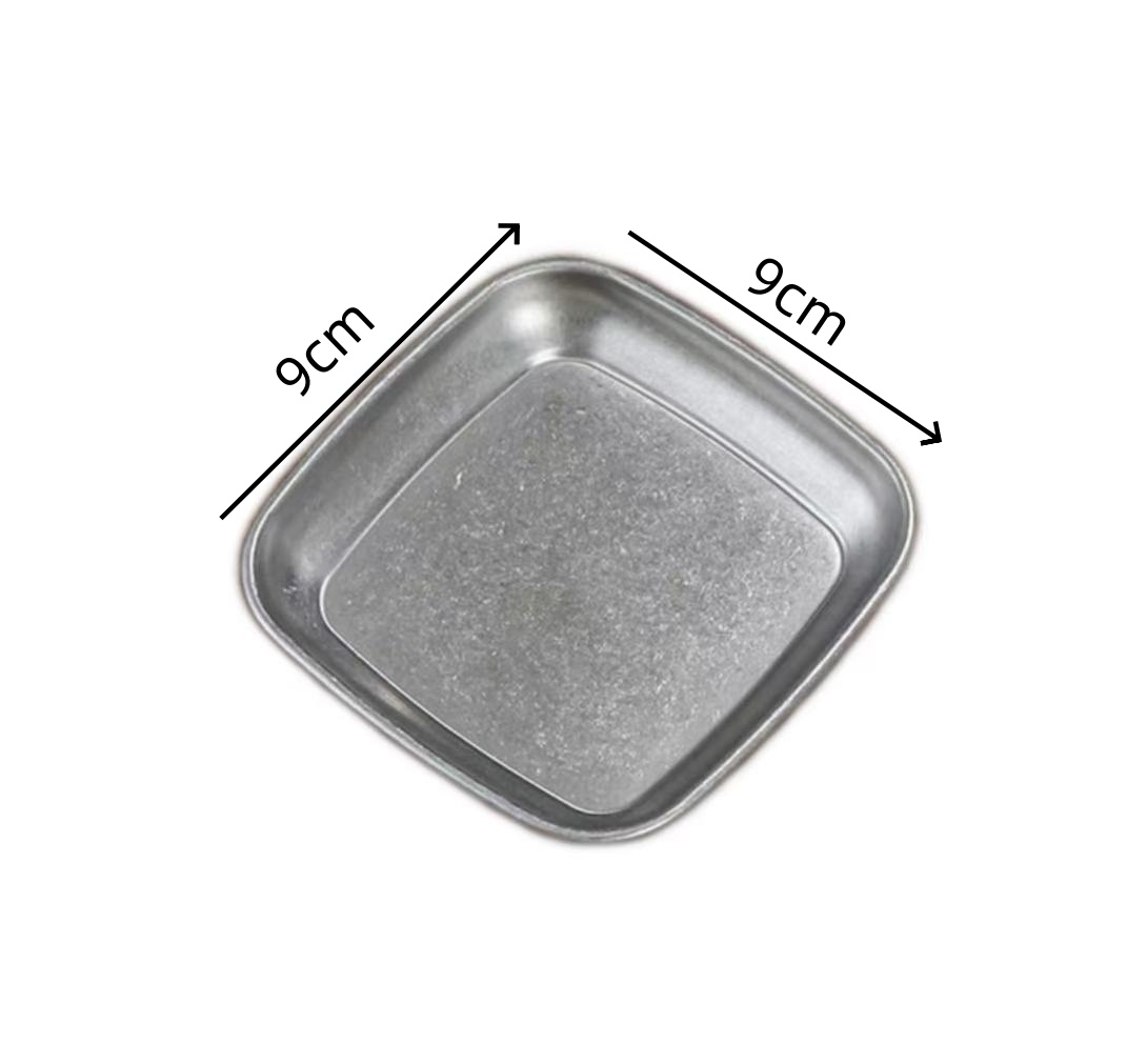 CU-Piattino rettangolare stile coreano in acciaio effetto vintage 9x9x1.3 cm